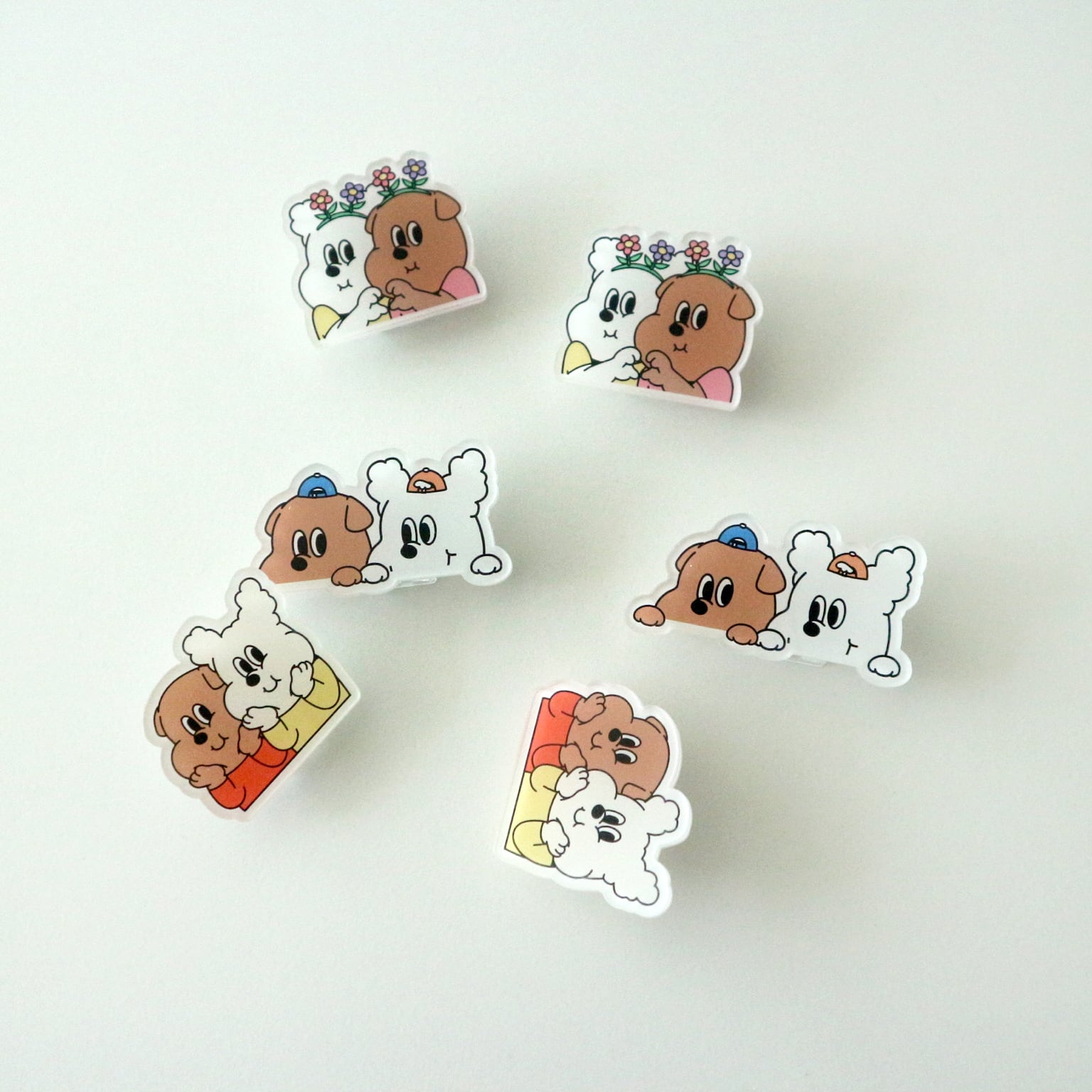 人気のゴンチリとゴンシリがかたどられたアクリル製のクリップ。