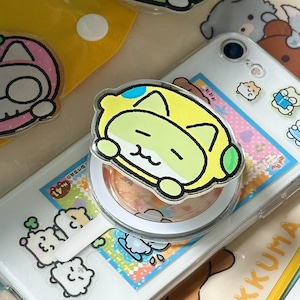 HEEHEECLUBならではのゆるっとしたキャラクターをそのままかたどったエポキシ素材のクリアスマホグリップ。