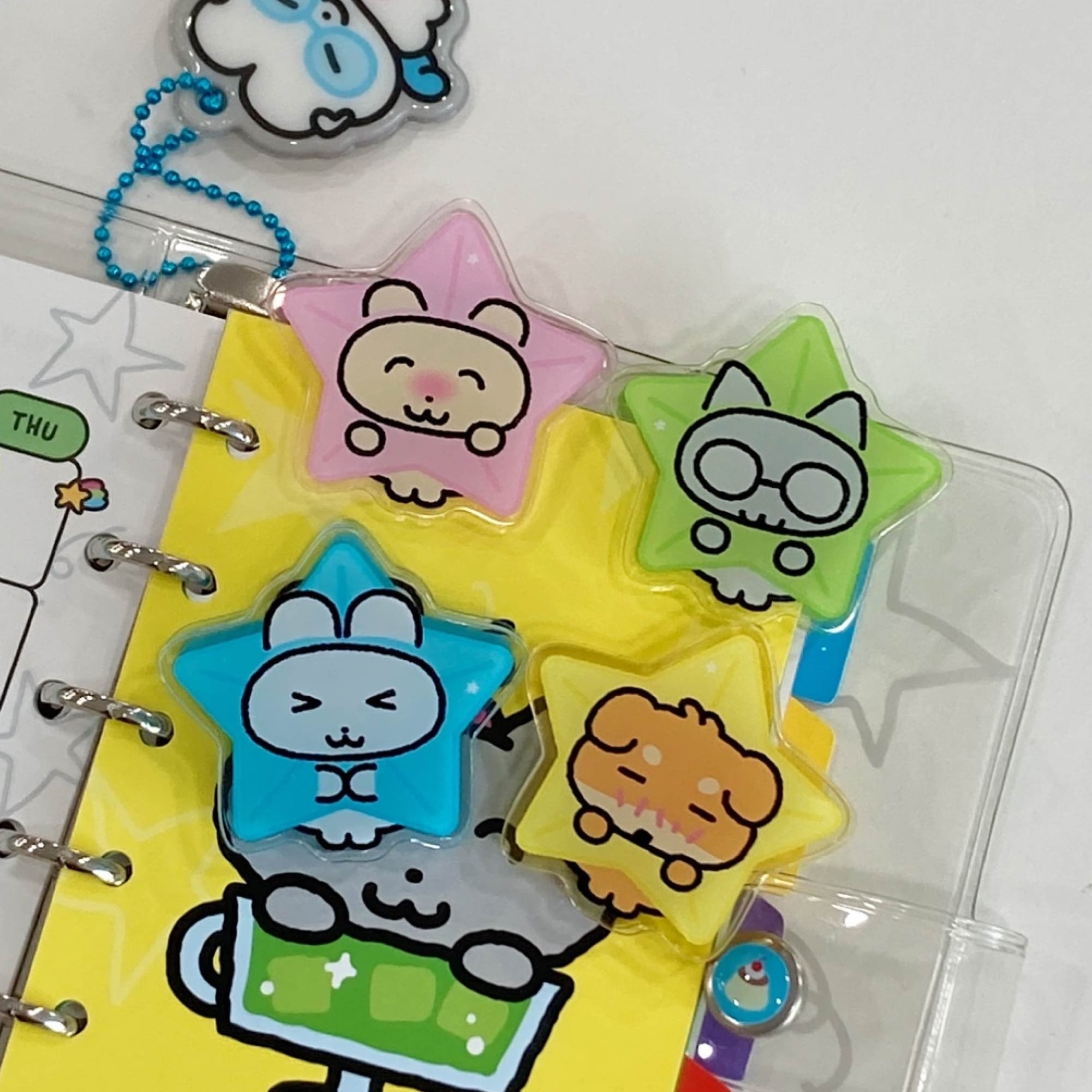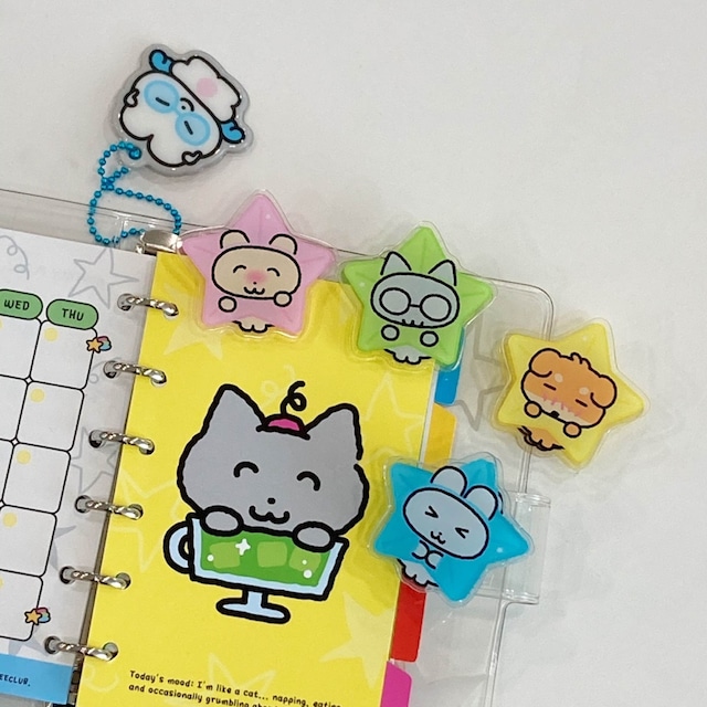 HEEHEECLUBのならではのゆるいタッチで描かれたキャラクターのアクリルクリップ。