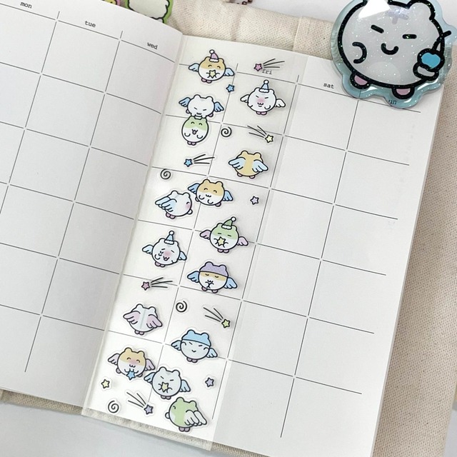 ミニサイズのクリアステッカーなので、ダイアリーに貼ったりするのはもちろん、AirPodsなどの小さな持ち物に貼ったりするのもおすすめです。