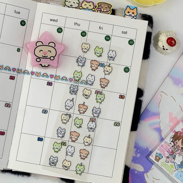 ミニサイズのクリアステッカーなので、ダイアリーに貼ったりするのはもちろん、AirPodsなどの小さな持ち物に貼ったりするのもおすすめです。