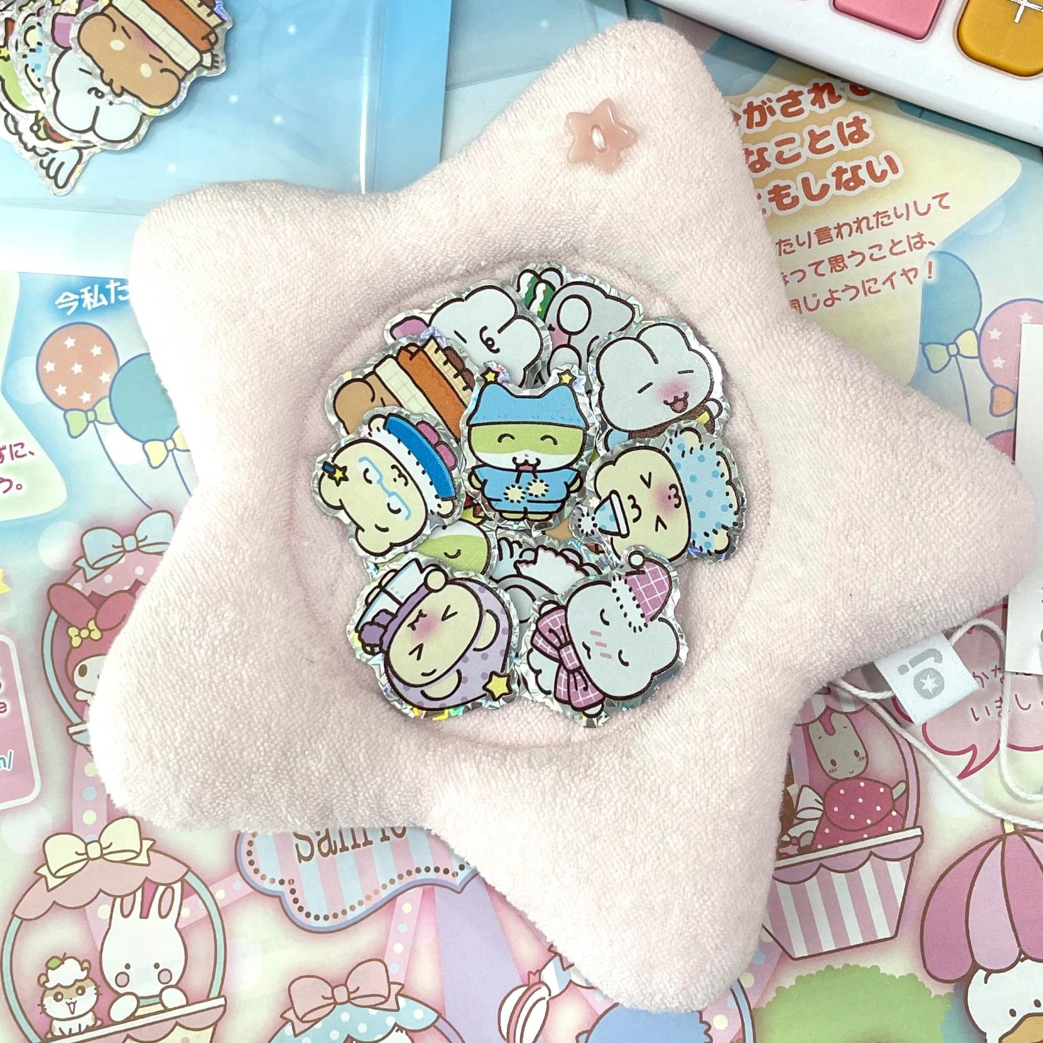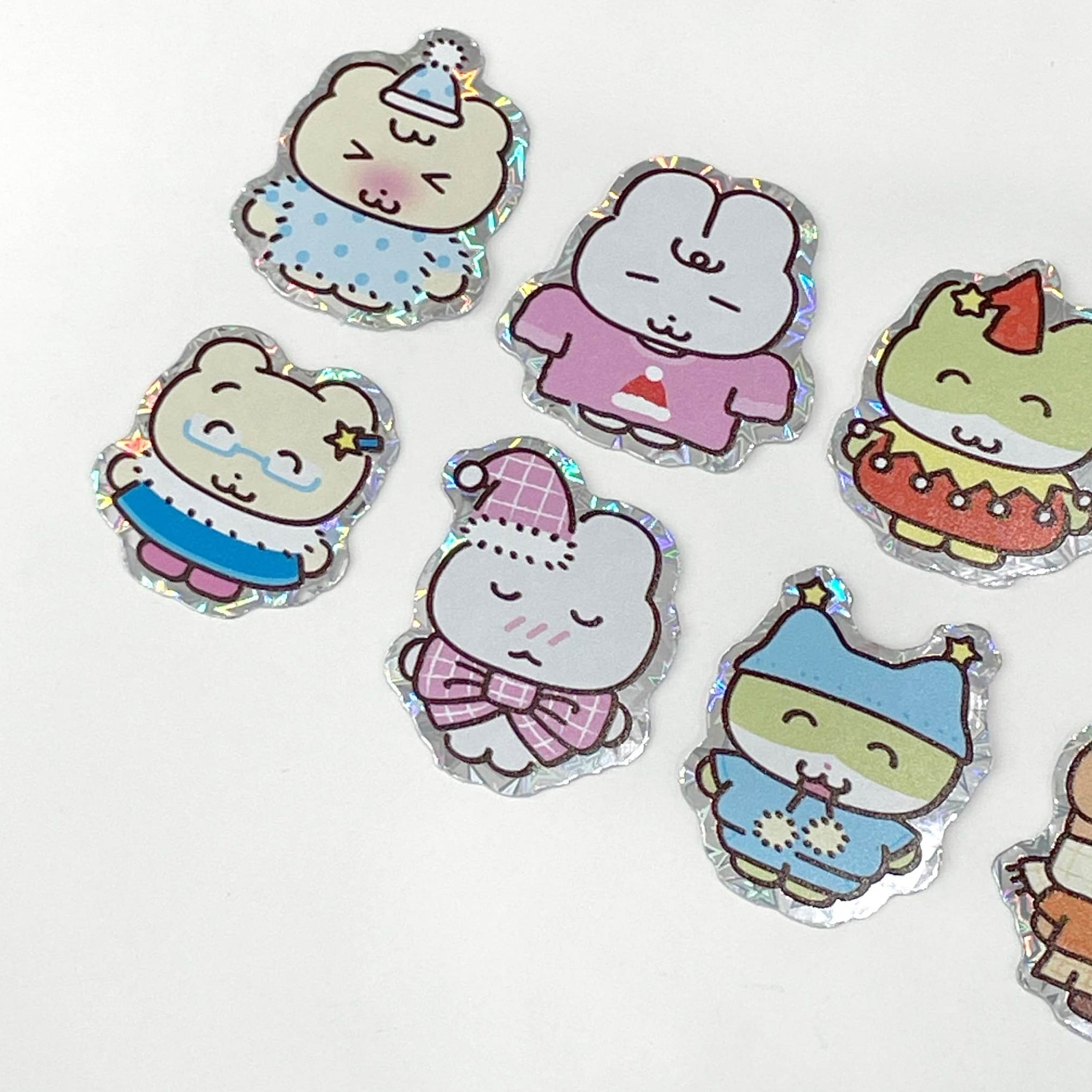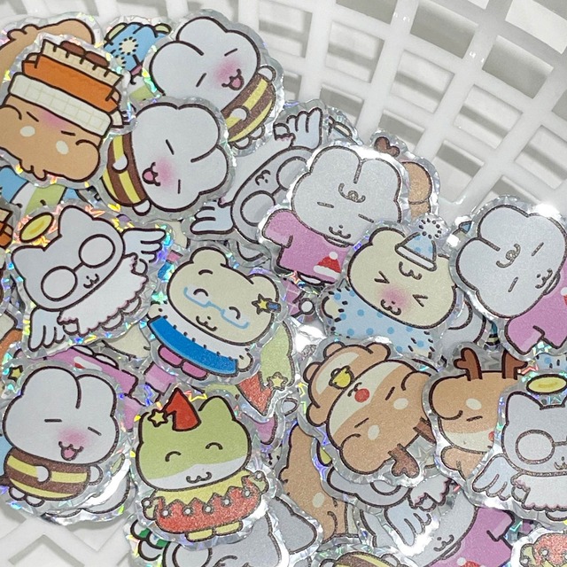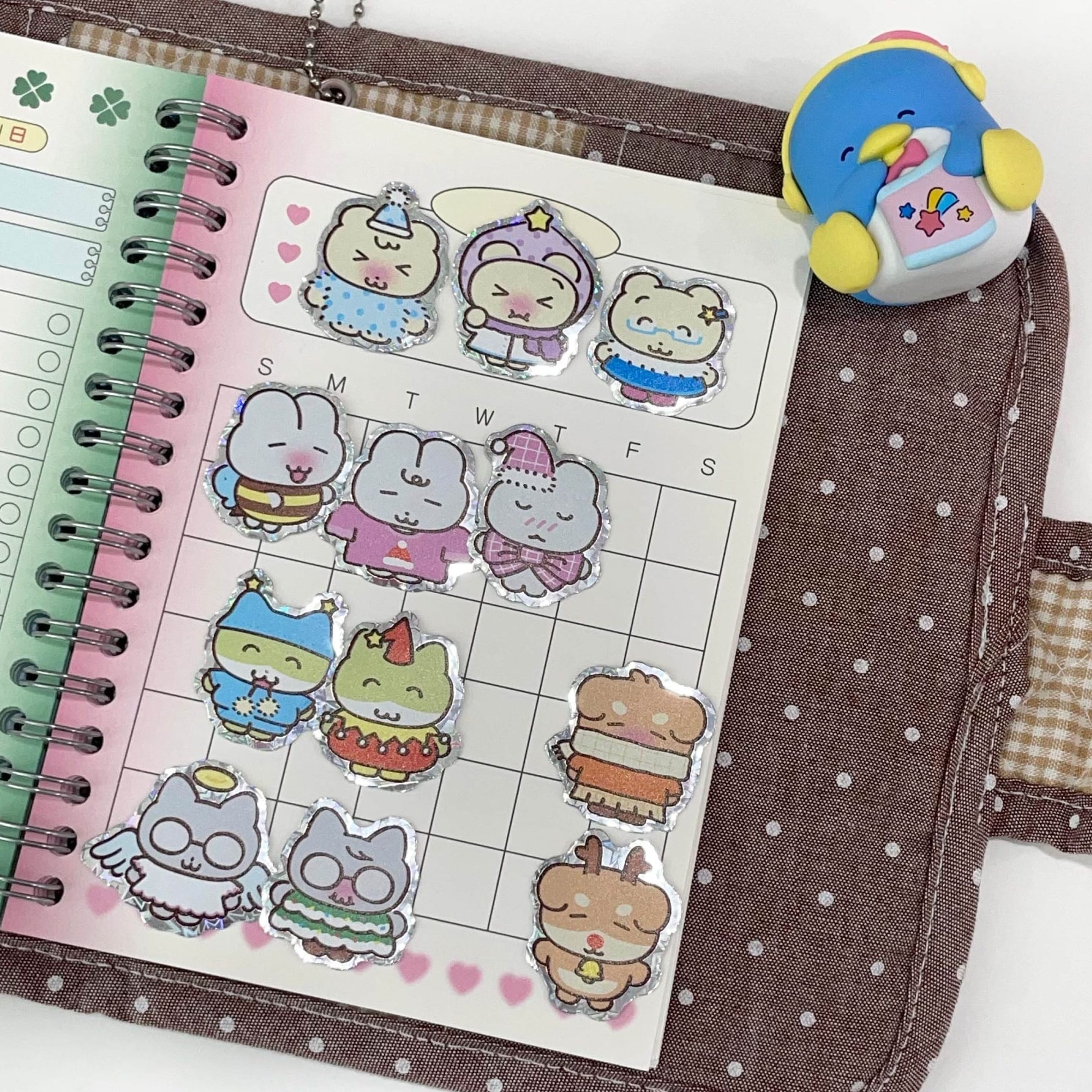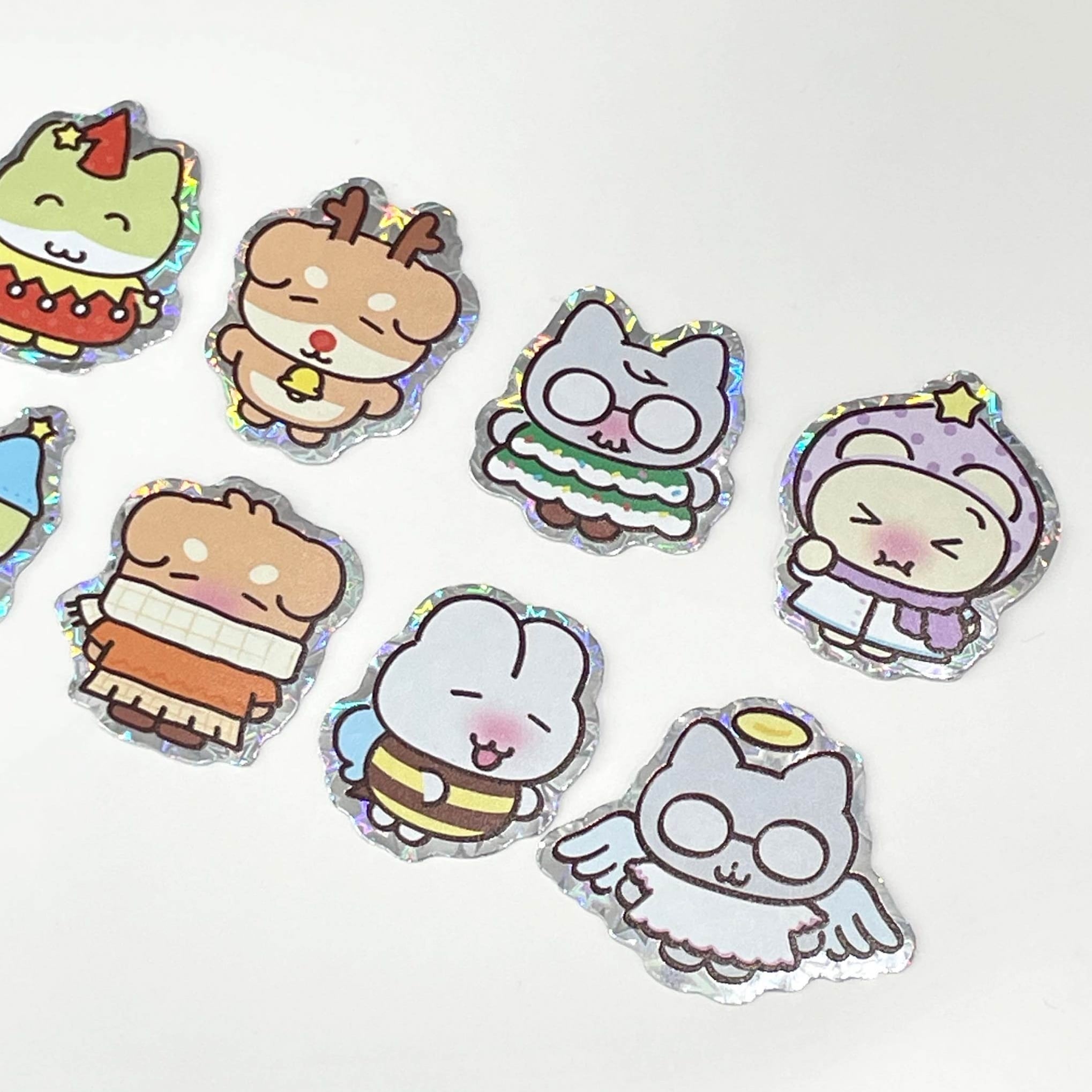 HEEHEECLUBならではのゆるっとしたキャラクターとキラキラ輝くホログラムが魅力の型抜きステッカーセット。