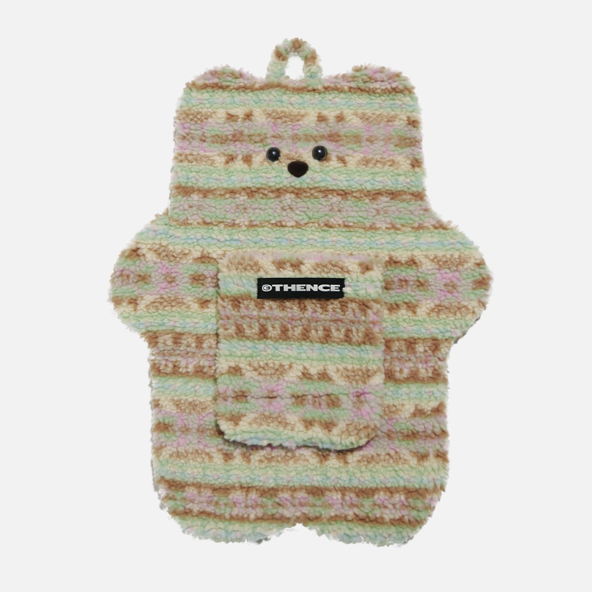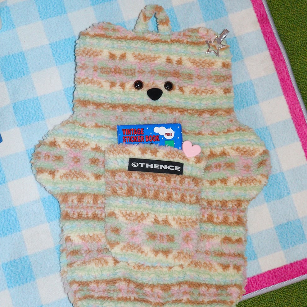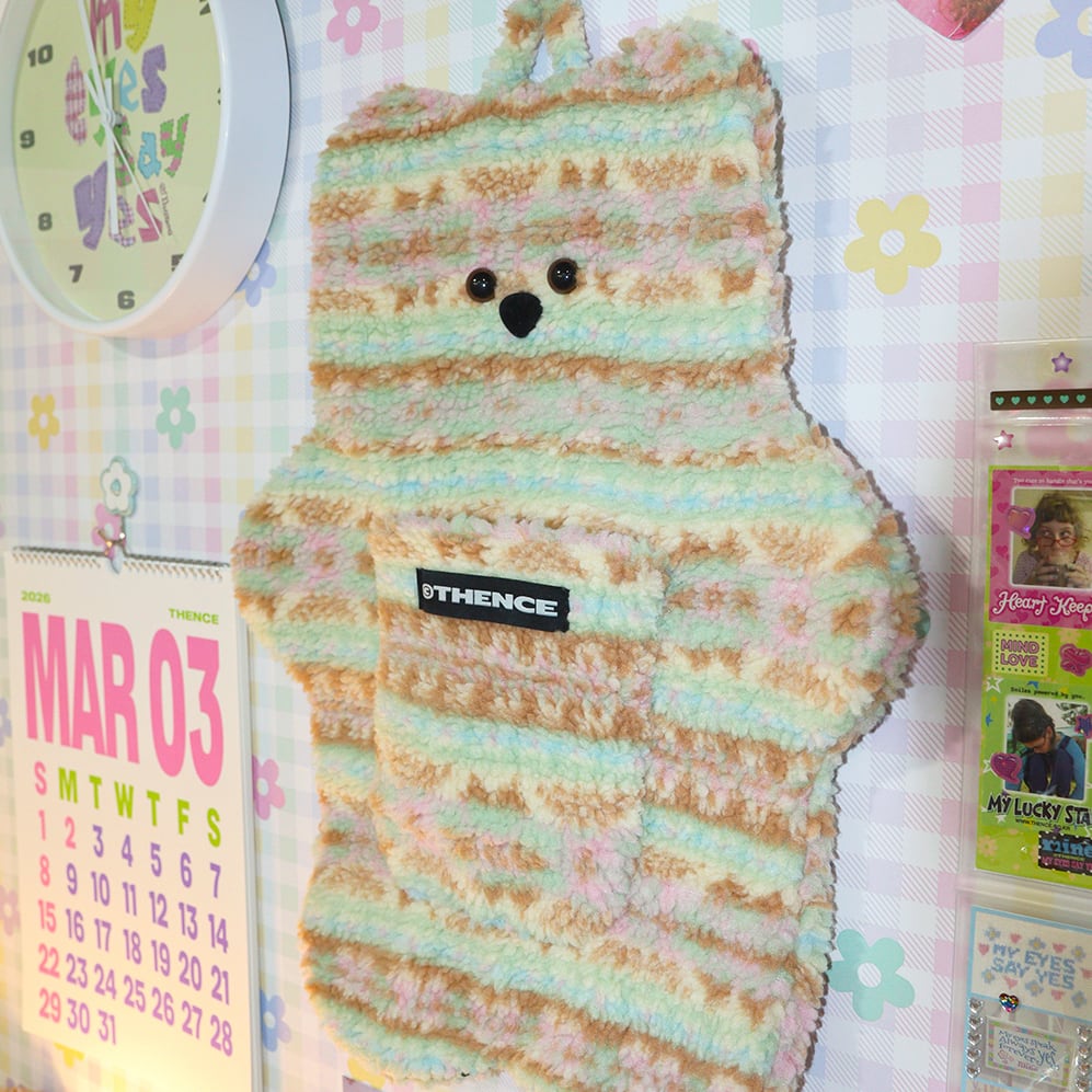 温かくもこもことしたファーの質感と可愛らしい目鼻口が際立つ、THENCEならではのユニークなテディベアウォールポケット。
