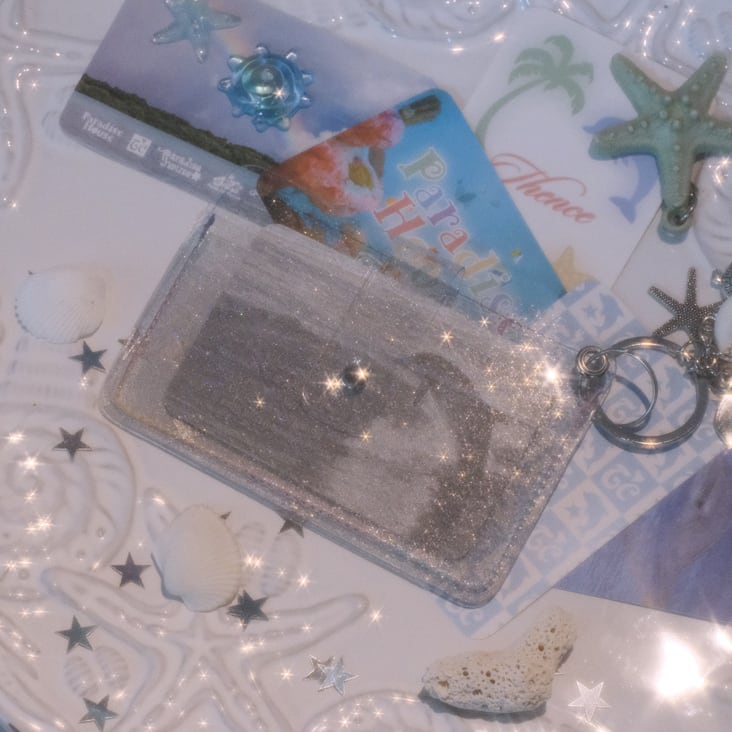 さりげなくキラキラと輝く透明なグリッター生地が魅力のカードウォレット。