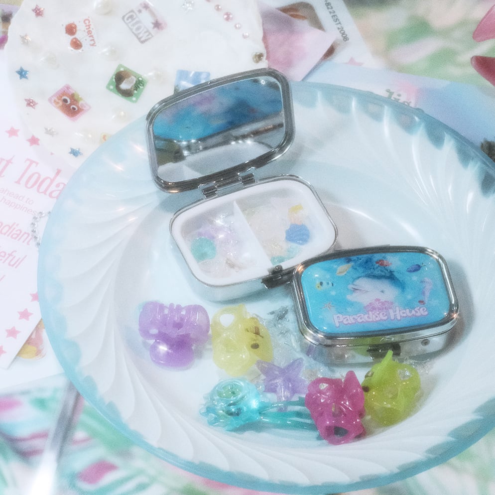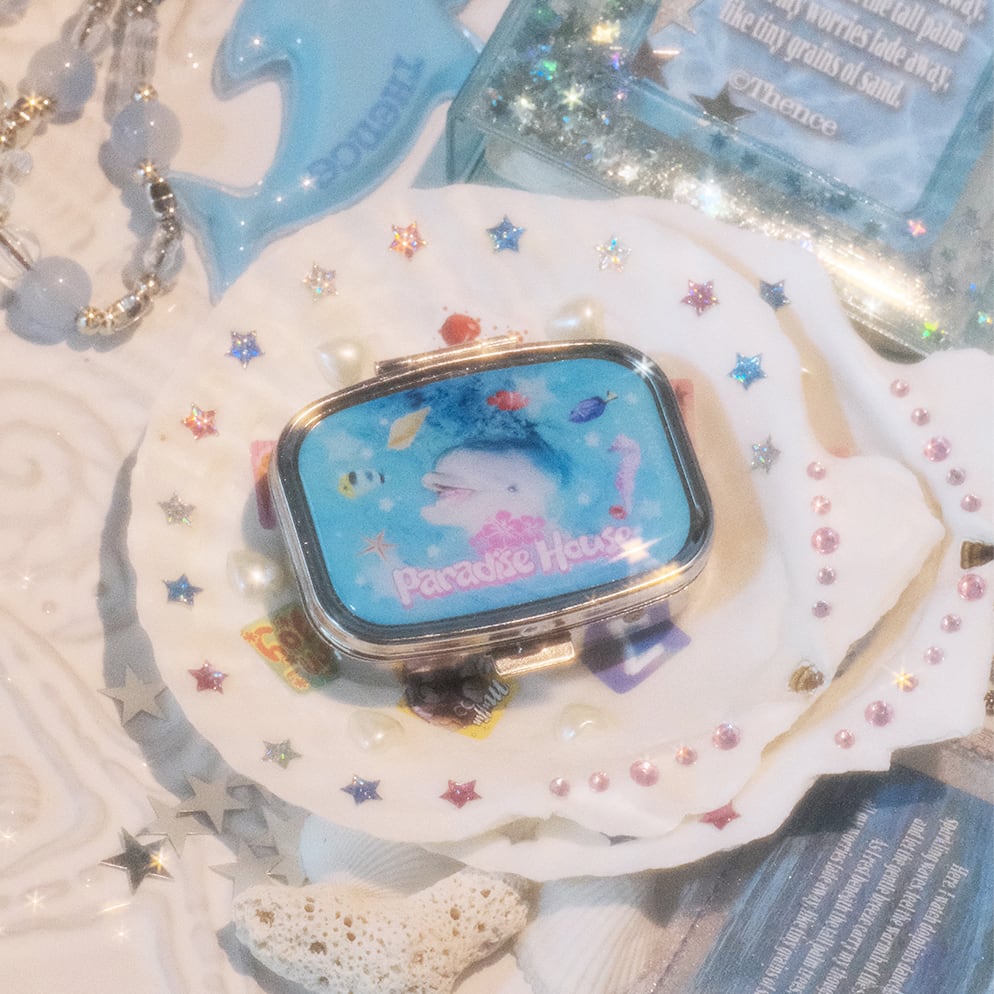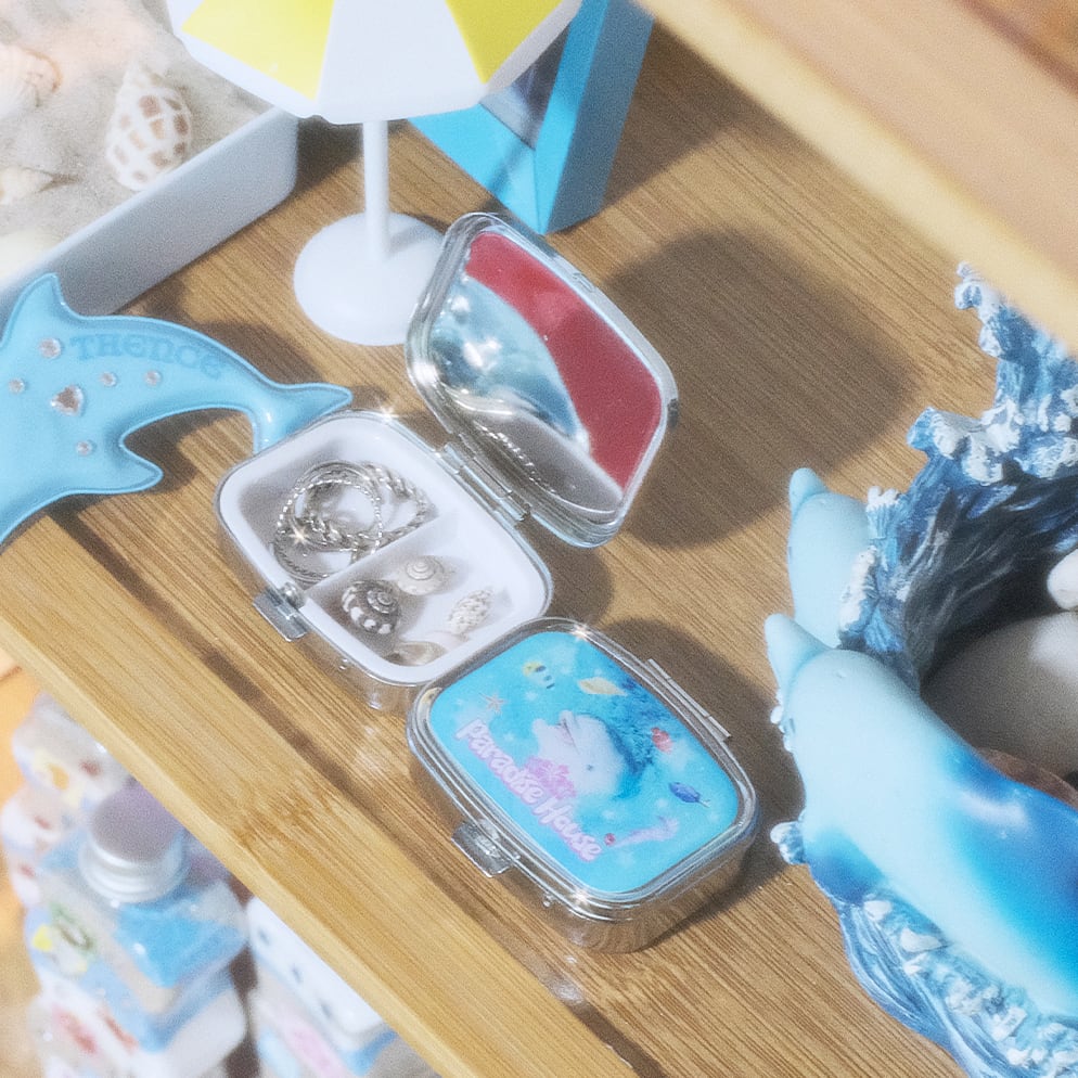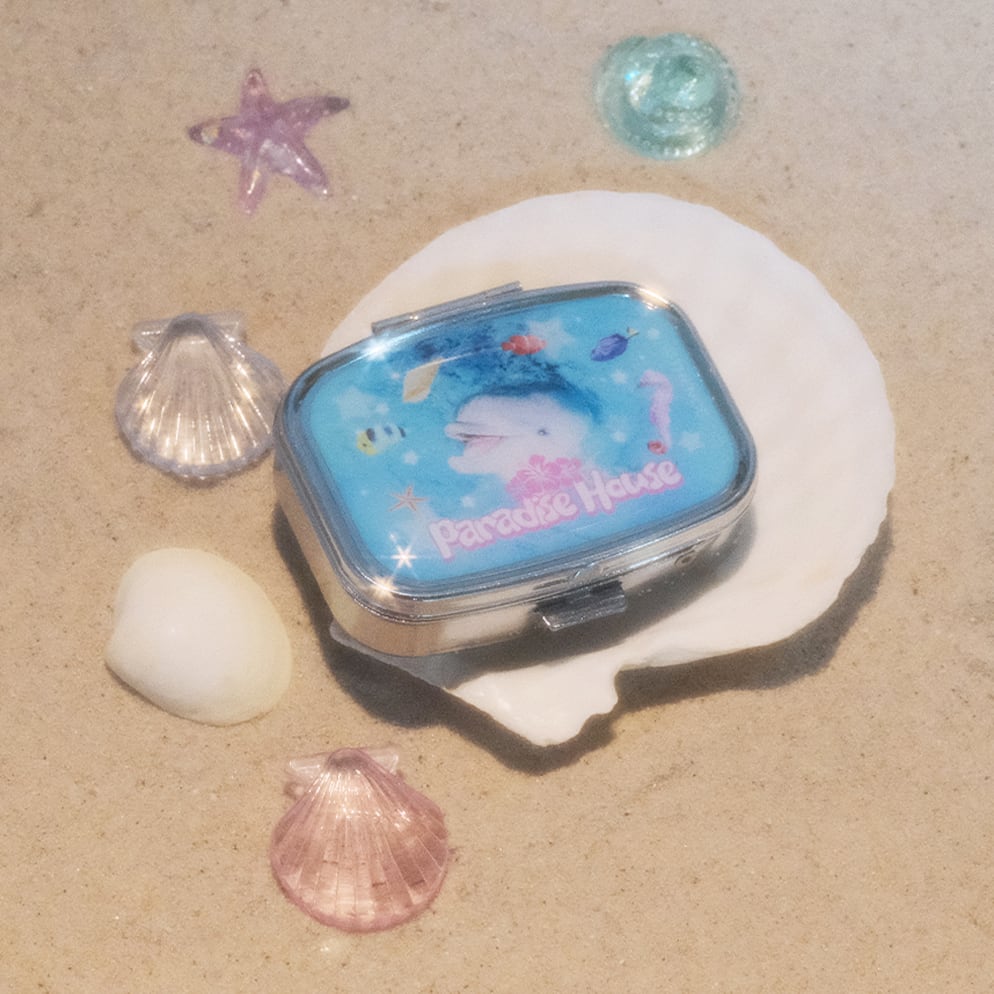 イルカと海の仲間たちを25SS LDPのコンセプトで楽しく表現したミニマルチケース。 内部は2つの収納スペースに分かれており、薬や小物類を収納したりと、使い勝手の良いアイテムです。 小ぶりなサイズ感なので、気軽に持ち歩きやすいのも嬉しいポイント。 [サイズ] 5.5×4×1.3 (cm) [材質] 金属、プラスチック、エポキシ樹脂