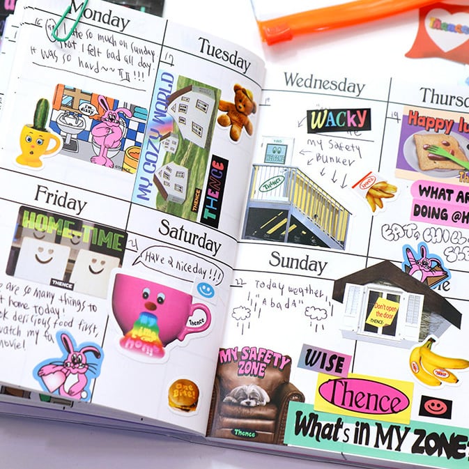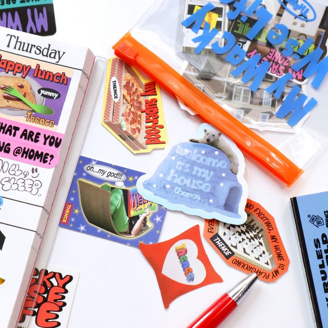 THENCE20FWシーズンのグラフィックやイラストで作られたステッカーパック。