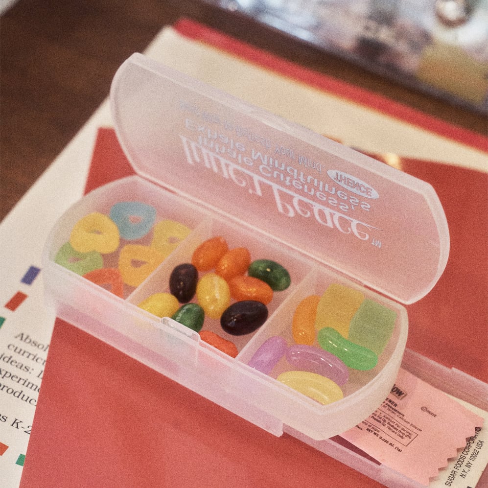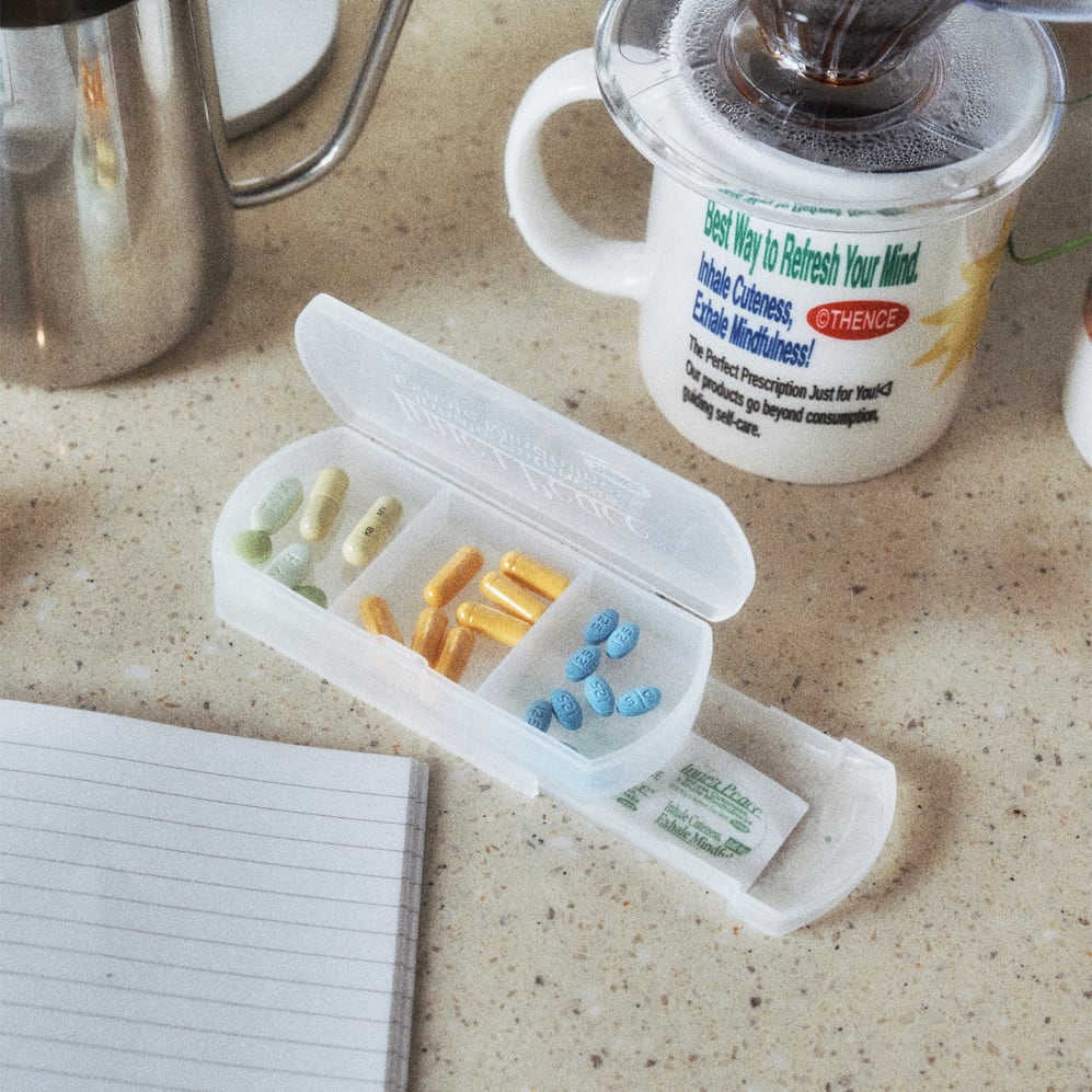 25SS シリーズのシーズンコンセプトをモチーフにしてデザインされたピルケース。 3つに区切られた錠剤を入れるスペースと底面に絆創膏などを収納できるスペースがあり、実用性も申し分ありません。 救急用品以外にも、キャンディやタブレットなどのお菓子やアクセサリーなどの細々とした持ち物を可愛く収納できます。 [サイズ] 11.8×5×2.5 (cm) [材質] プラスチック