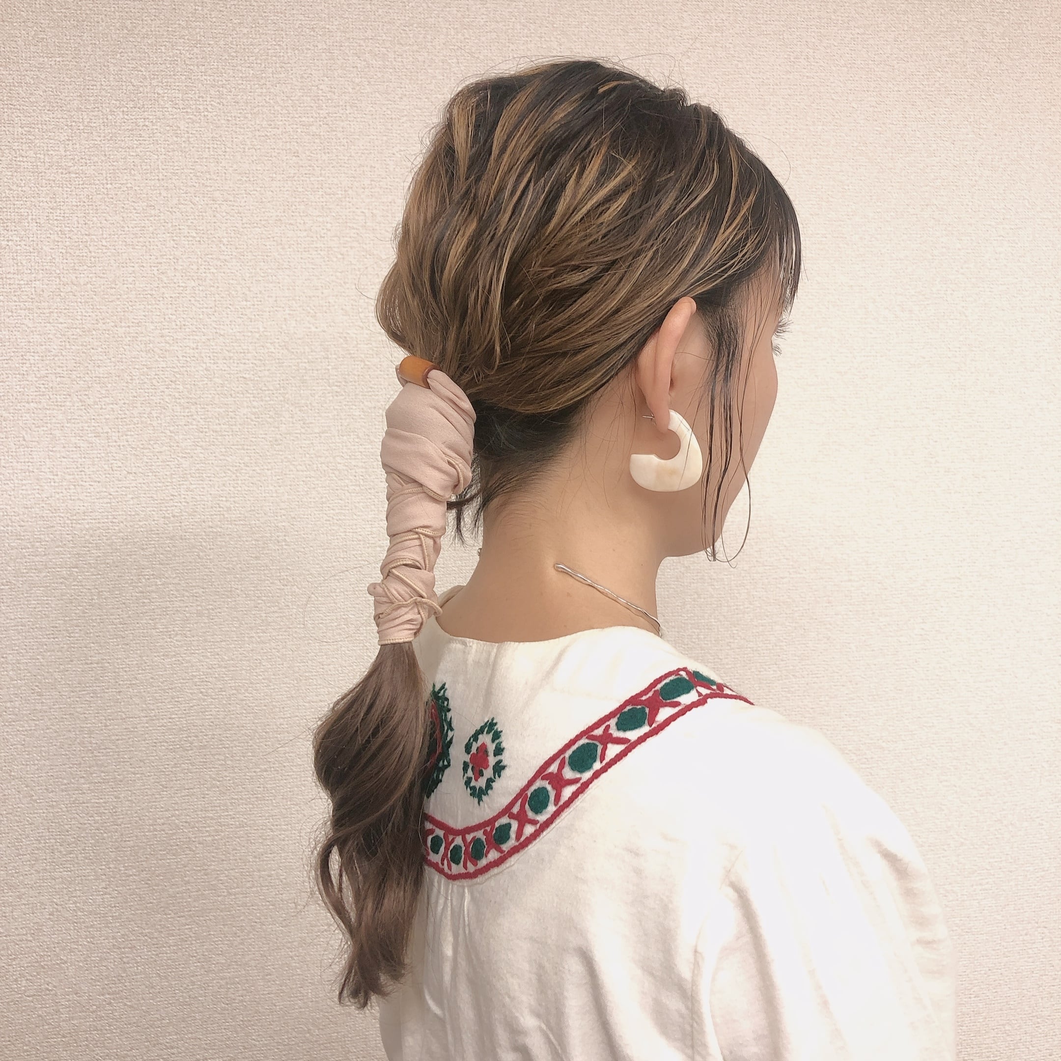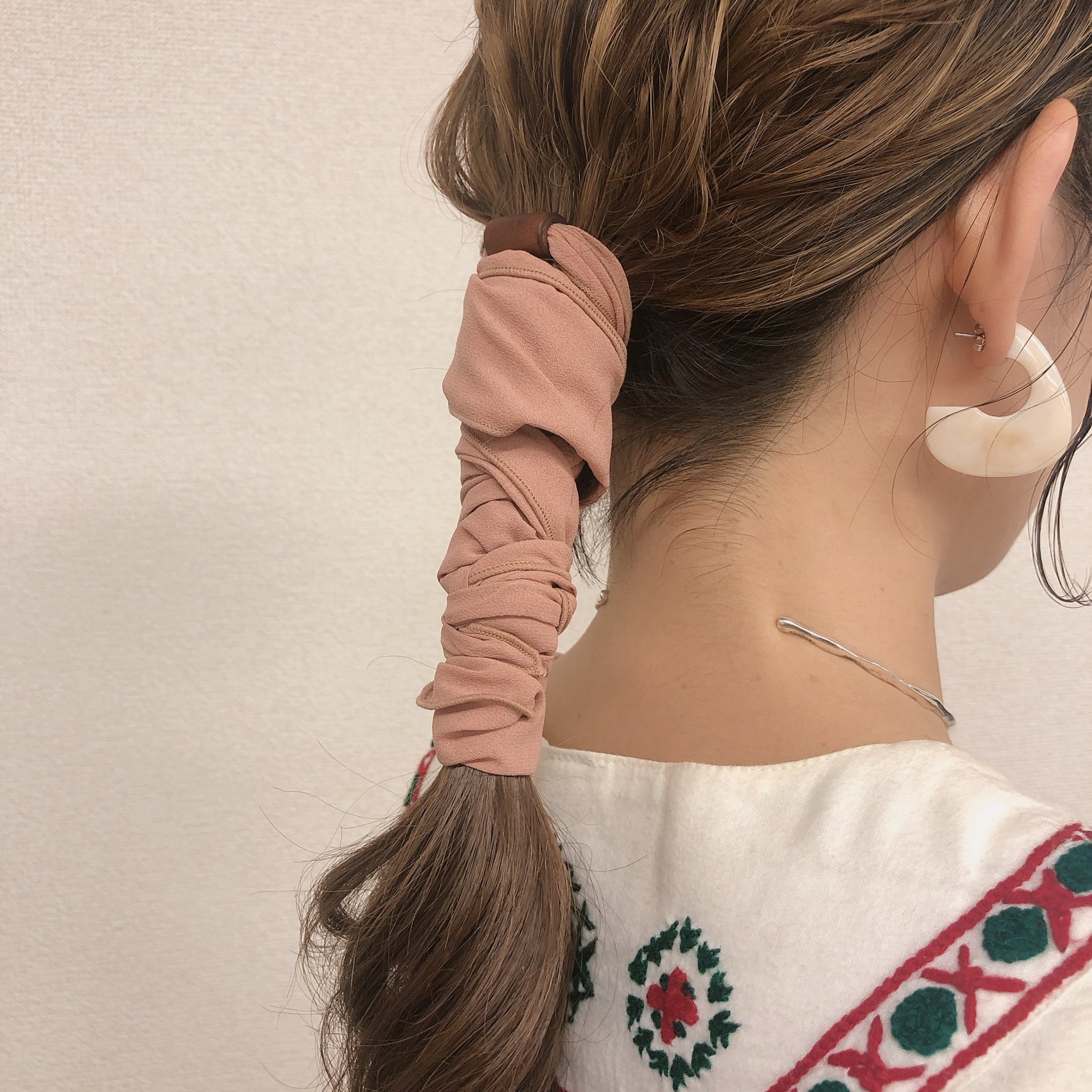 ワイヤ―が入っており自由な形に変形自在なので、シンプルにぐるぐる巻きつけたり、先を少し残してリボンのように見せるアレンジも可能。
