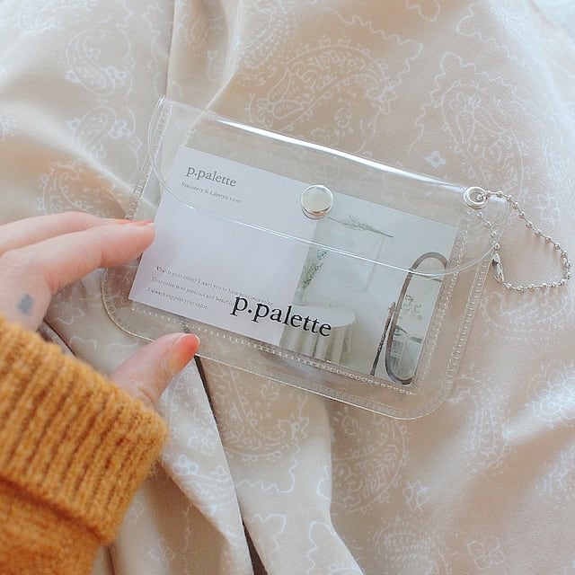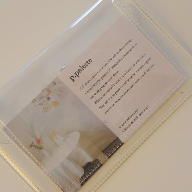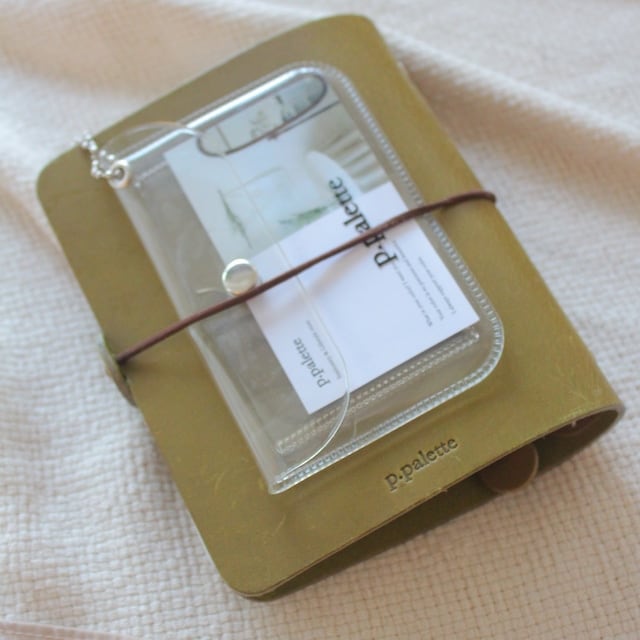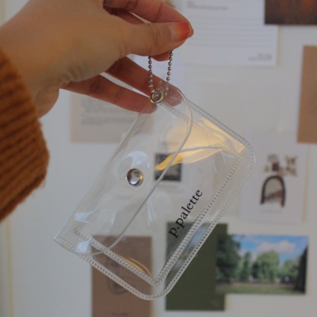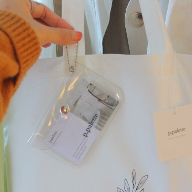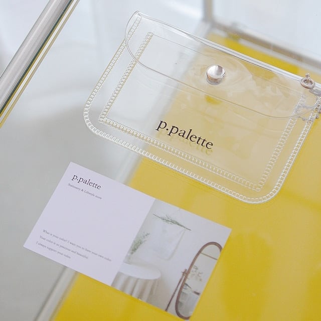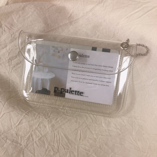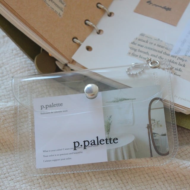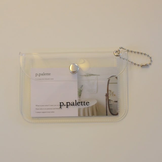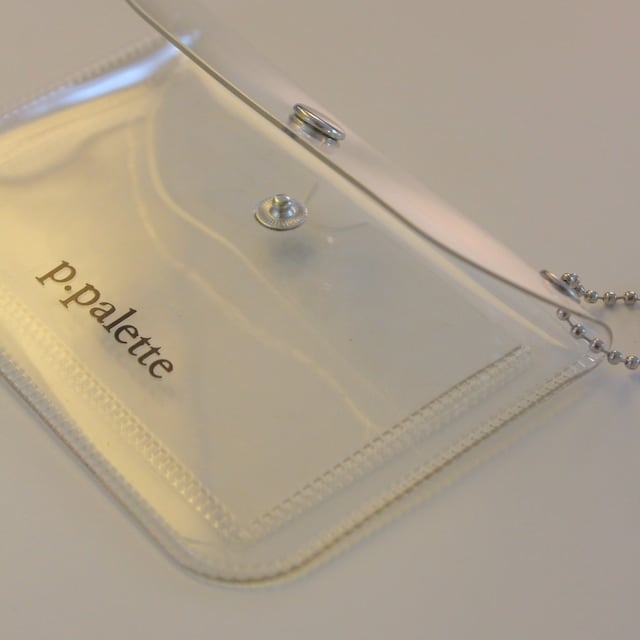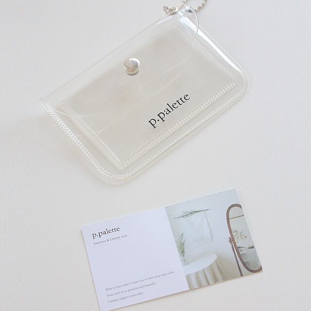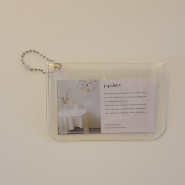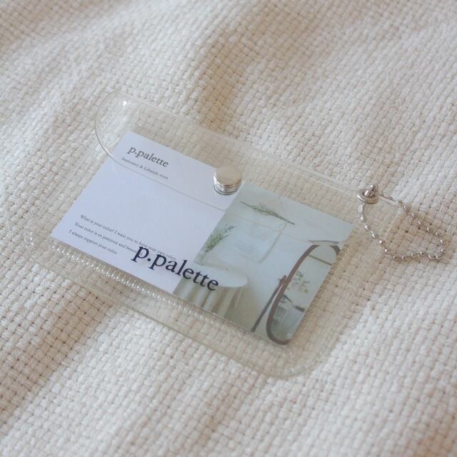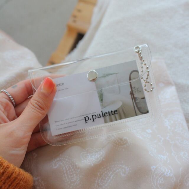 p.paletteのシンプルなロゴと透けて見えるカードのデザインが目を引くPVCカードポーチ。