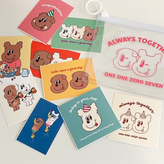 ゴンチリとゴンシリはもちろん、たくさんの仲間たちが集合したステッカーパックで、スクエア型なのでPCに貼ったりスマホとケースの間に挟んだりするのにおすすめ。