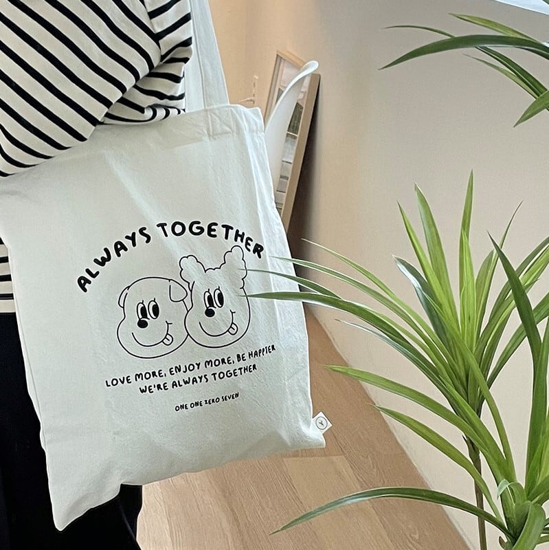 人気の「ゴンチリ」と「ゴンシリ」が大きく描かれたシグニチャーエコバッグ。