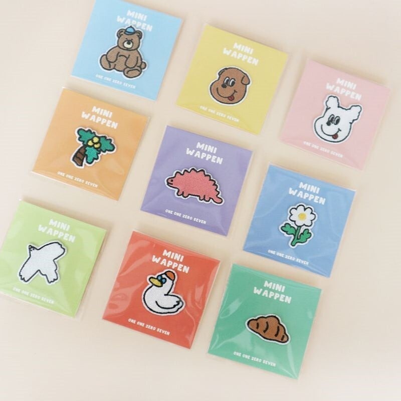 ゴンチリやゴンシリをはじめとする1107ならではのモチーフが魅力の、アイロンで接着可能な刺繍ワッペン。