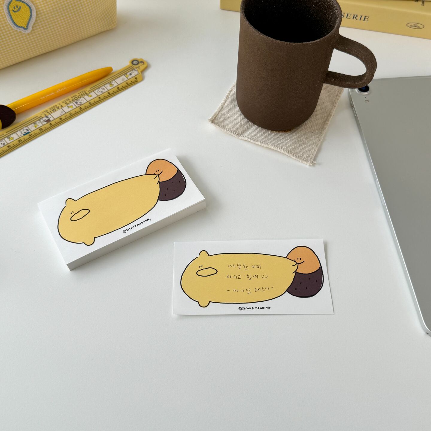 second morningの人気キャラクターであるSEMOフレンズがユニークに描かれた個性溢れるメモパッド。
