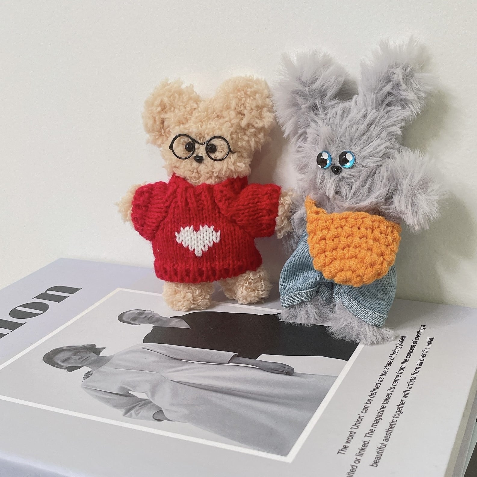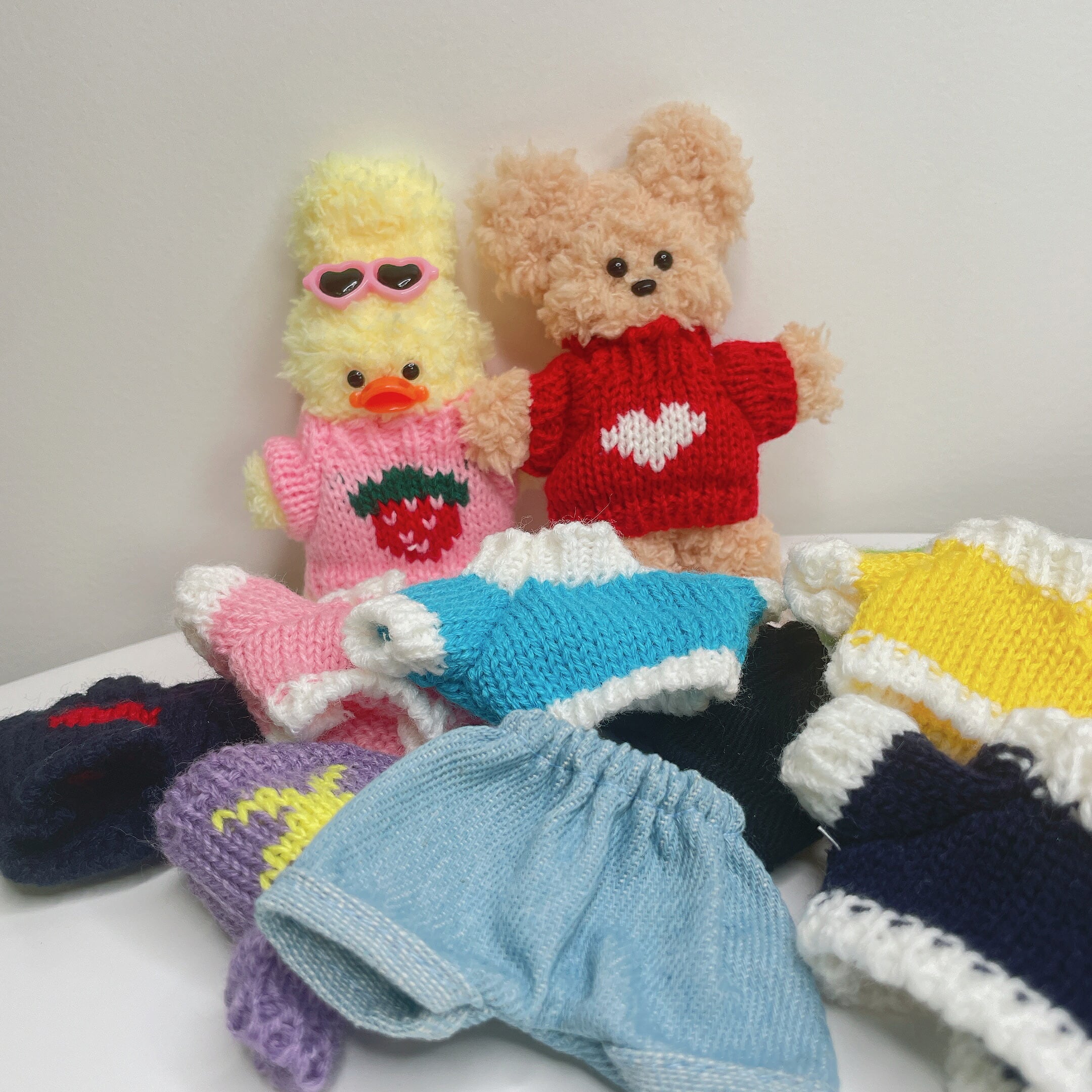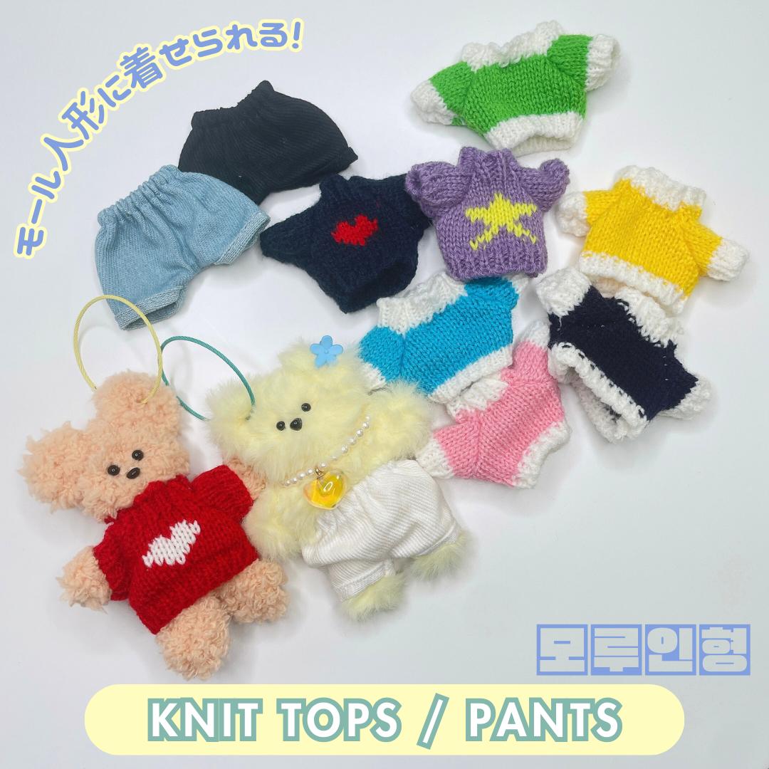 韓国でも話題沸騰中の"????(モール人形)"に着せることのできる人形やぬいぐるみ用のニットとパンツ。